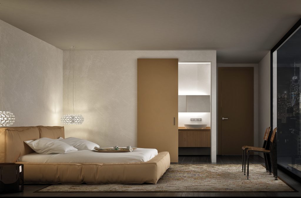 Дверь на системе открывания MAGIC – наверное, самое необычное наше изобретение. Она парит в воздухе и двигается в пространстве без какой-либо помощи. Со стороны это выглядит как магия. Но мы-то знаем, сколько труда и технологий вложено в ее невидимый откатный механизм, который создает этот эффект парящей двери. Если заменить глухое полотно на зеркало, можно оригинально скрыть гардеробную или техническую комнату.