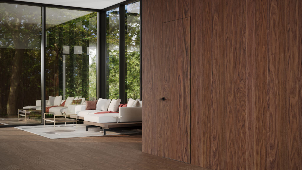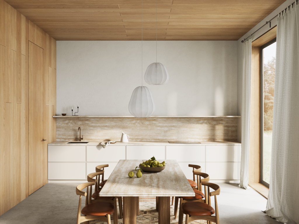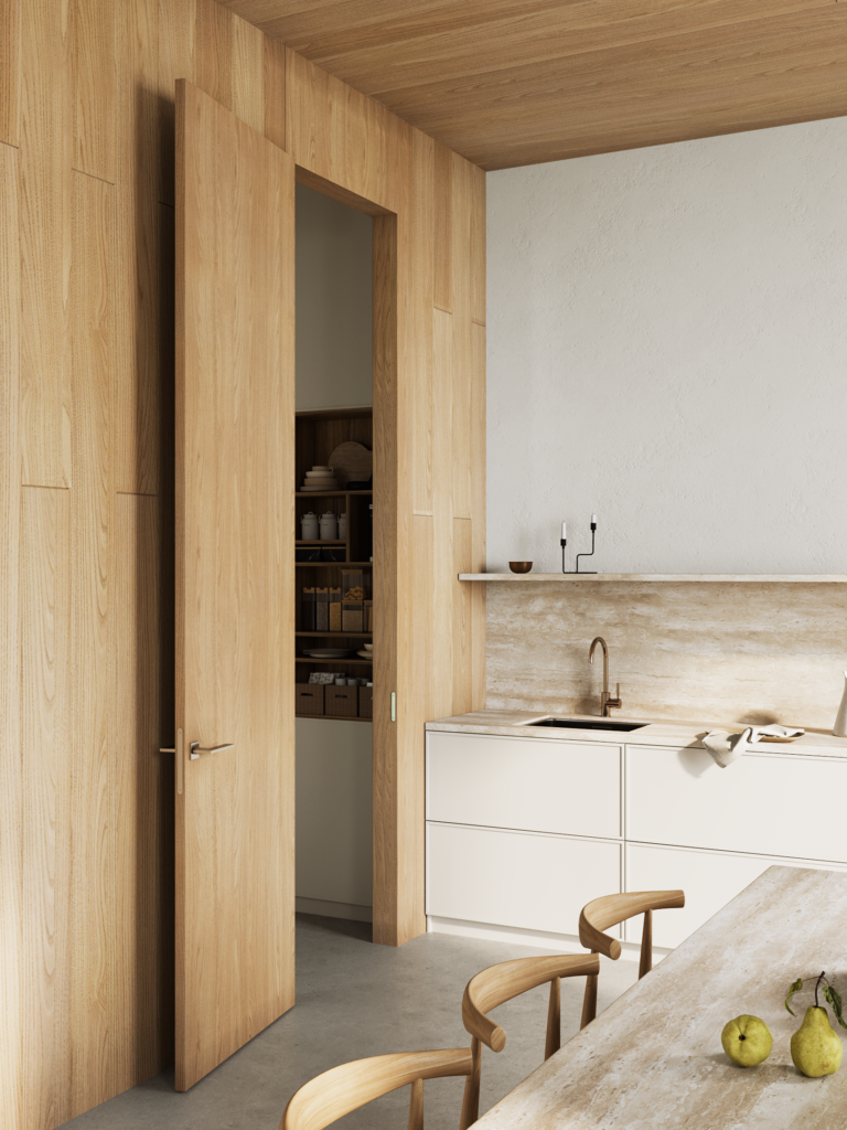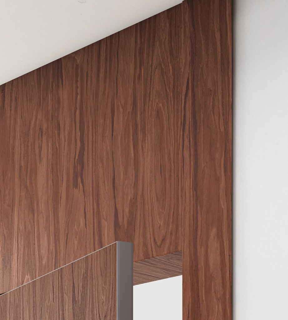 Поэтому решение с коробом 5G, фальш-фрамугой и стеновыми панелями 5G идеально подходят для загородного минимализма и сочетания практичности с натуральными материалами».