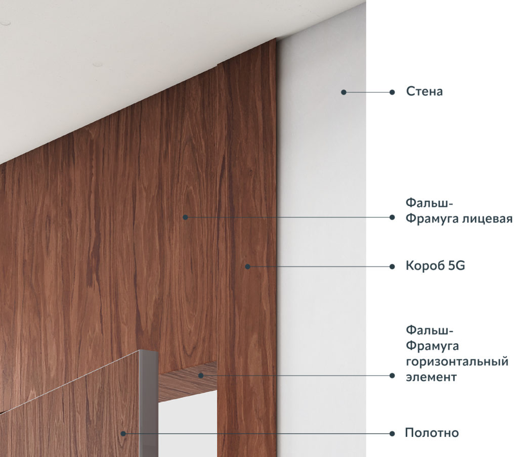 Обратите внимание, что фальш-фрамугу мы устанавливаем только вместе с коробом 5G. Это наша инновационная разработка, которая помогает создать единое пространство вровень со стеной. Никаких выпуклых наличников, зазоров и лишних деталей в проеме и на стене. Только единое ровное полотно. Это идеальное решение для всех, кто ценит современный дизайн, является фанатом минимализма и чистых линий.