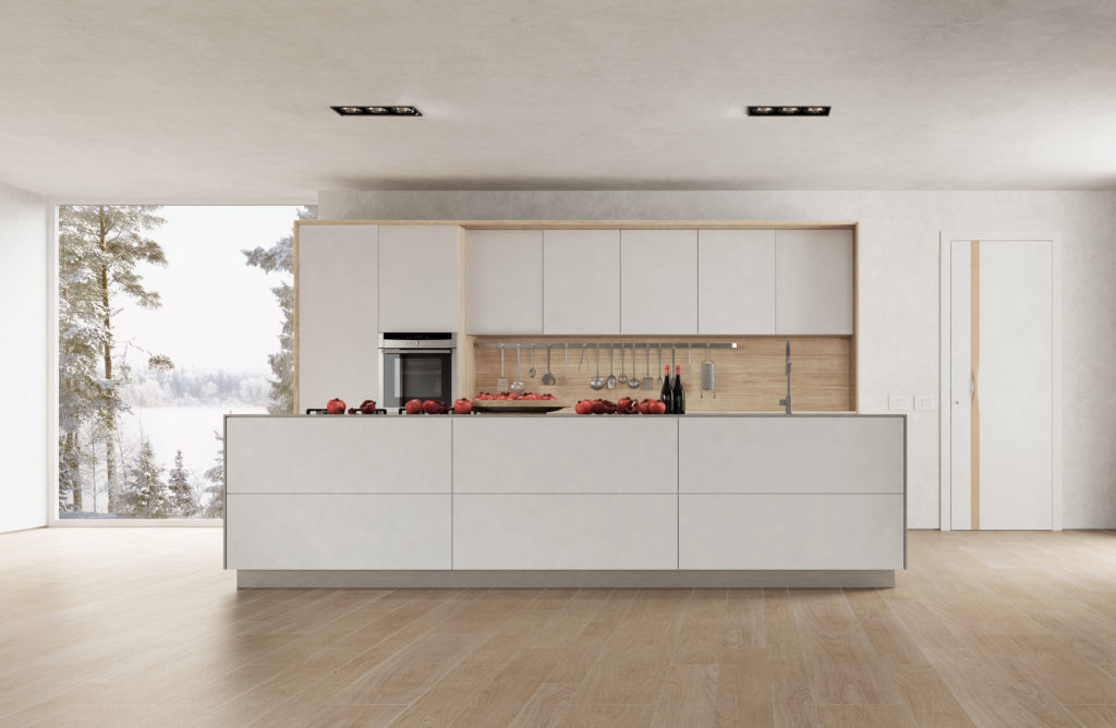 Ручка четко ложится в паз в полотне, благодаря резке алмазной фрезой. Специальные магнитные замки и изящный ключик делают дверь функциональной, но не умаляют эстетики.