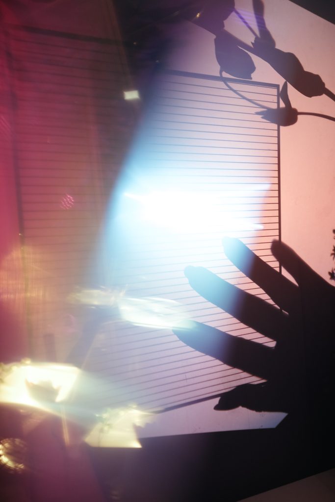 Через аналоговые проекторы, на которые каждый человек выкладывал собственную композицию, стекло превращалось в инструмент визуального высказывания. А Маша, в диалоге с каждым гостем, собирала портрет — тонкий, хрупкий, но очень живой.