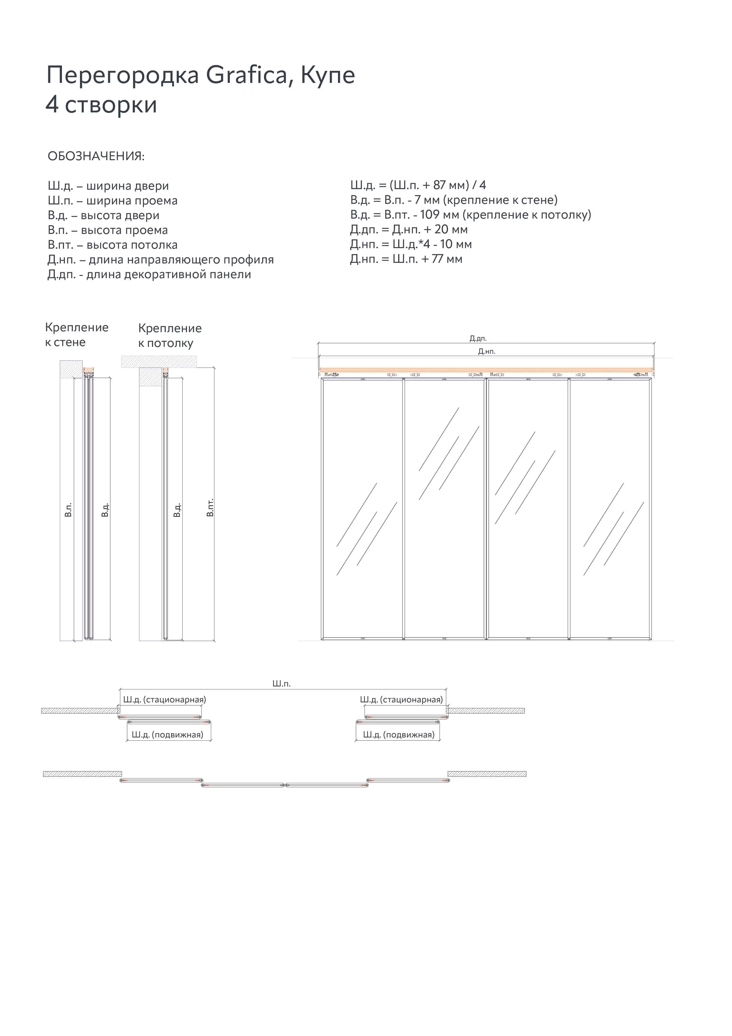Ширина створки (кроме зеркального полотна):от 600 до 1300 мм, шаг 1 мм