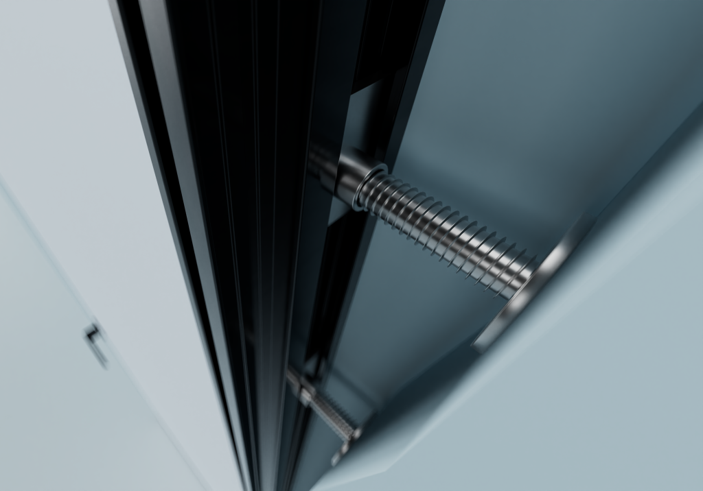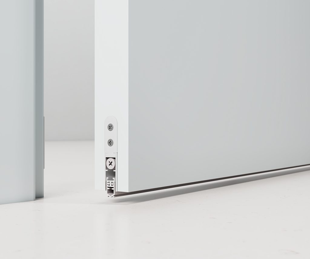 Запатентованная система регулировки, позволяющая выставить короб в проеме с точностью до 0,1 мм. Это упрощает монтаж и позволяет регулировать зазор между полотном и коробом до 2 мм.