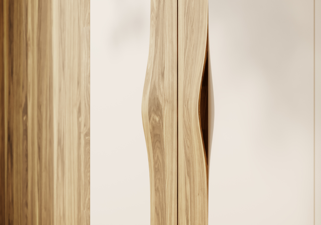 В качестве облицовки ручки мы используем брашированный натуральный шпон в четырех оттенках: орех американский, ясень белый, ясень черный, ясень натуральный. Это пример уникальной ручной работы по нанесению шпона на изгиб массива. Как и ее предшественница «Manigliona», новая коллекция «Manigliona 3000» не появилась бы на свет без лучших специалистов нашей фабрики, которые смогли воплотить настоящий арт-объект в реальность.
