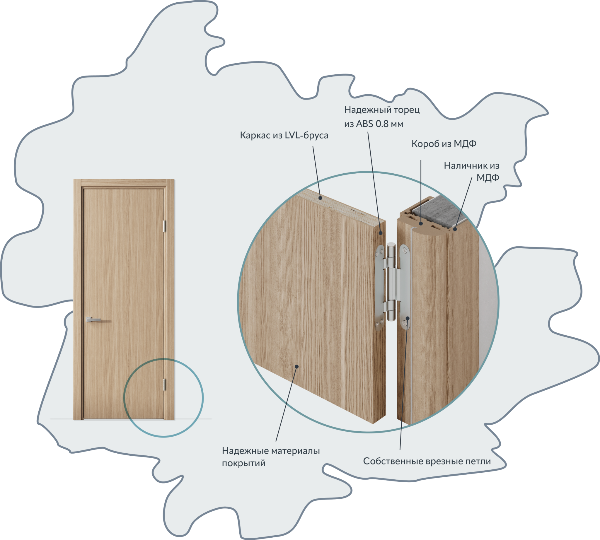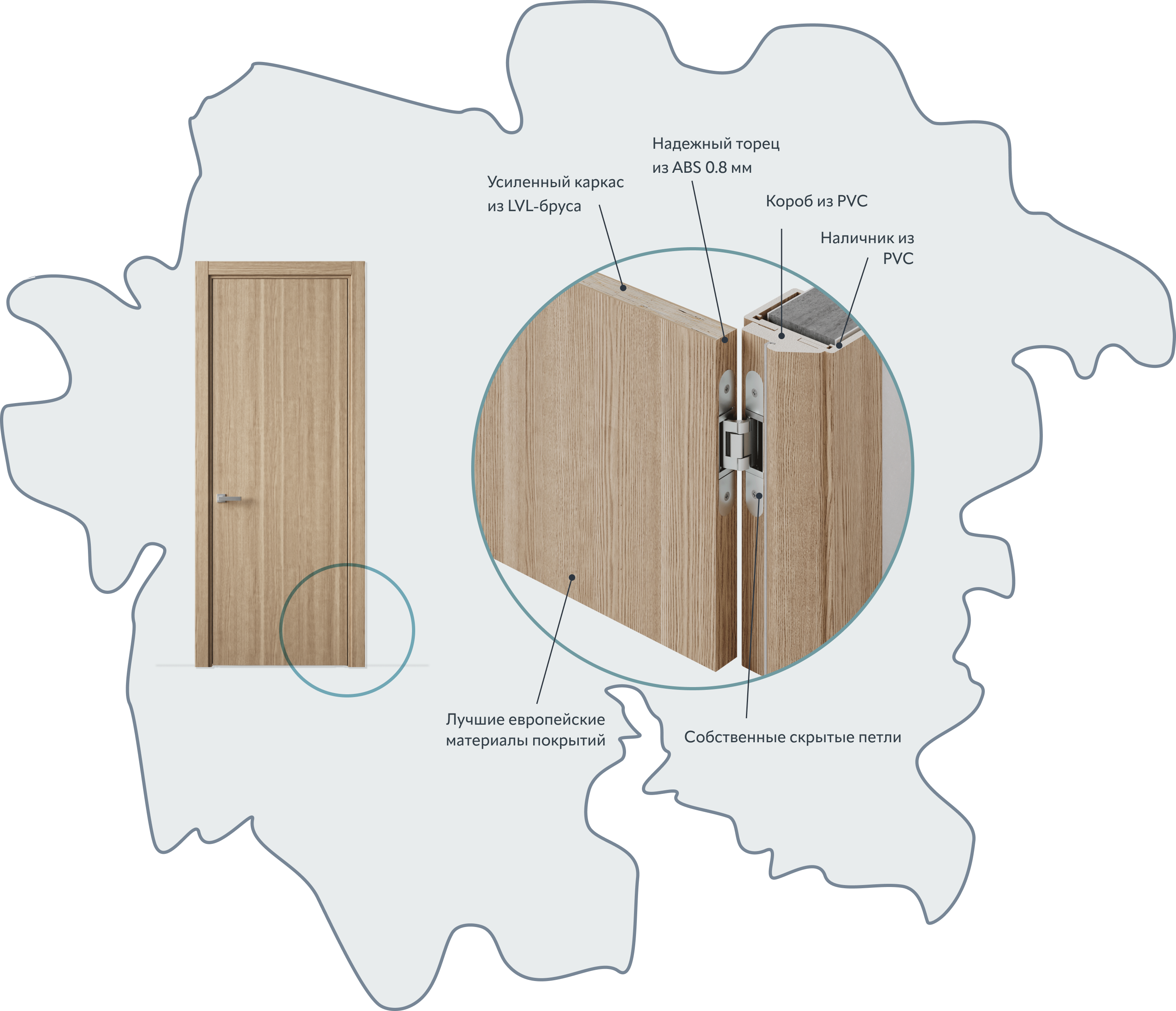 Мы продолжаем привозить материалы из Европы и Японии. Мы не используем такие материалы как ПЭТ и ПВХ (корейского и китайского происхождения, как у всех на дверном рынке).