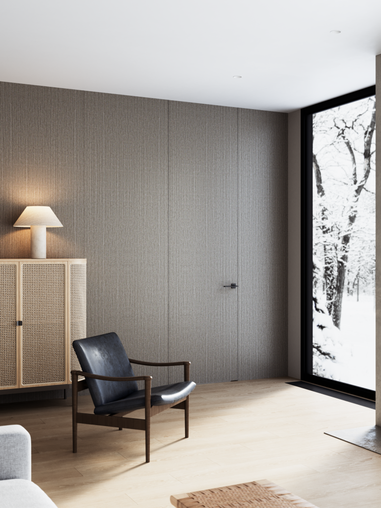 Высокие двери меняют восприятие пространства. Они «вытягивают» вертикаль, делают комнату более стройной и цельной. Вместо привычной горизонтальной рассечки на уровне 2 метров, вы получаете монументальную плоскость — будто портал, открывающийся в другое измерение.